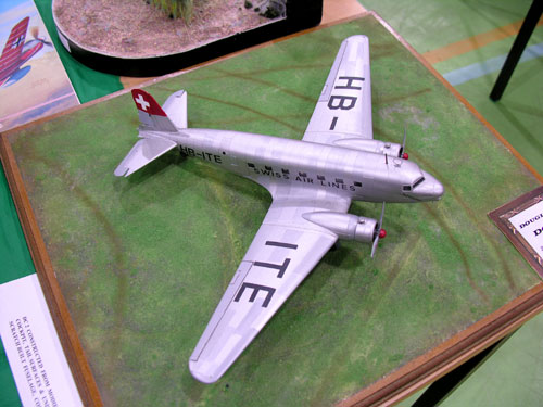 Poole Modelling Club were also in attendance with some lovely stuff but what really caught my eye was this DC-2; Italeri DC-3 wings with scratchbuilt fuselage and tail. Painted with Halfords Nissan Silver and then the panels touched up with an ancient pot of Airfix Silver enamel. A fine job indeed.