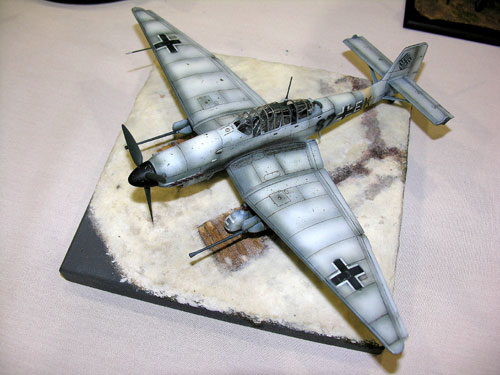 A tough paint job to replicate: winter white distemper, but this was a fine attempt on this Hasegawa Ju 87G-2